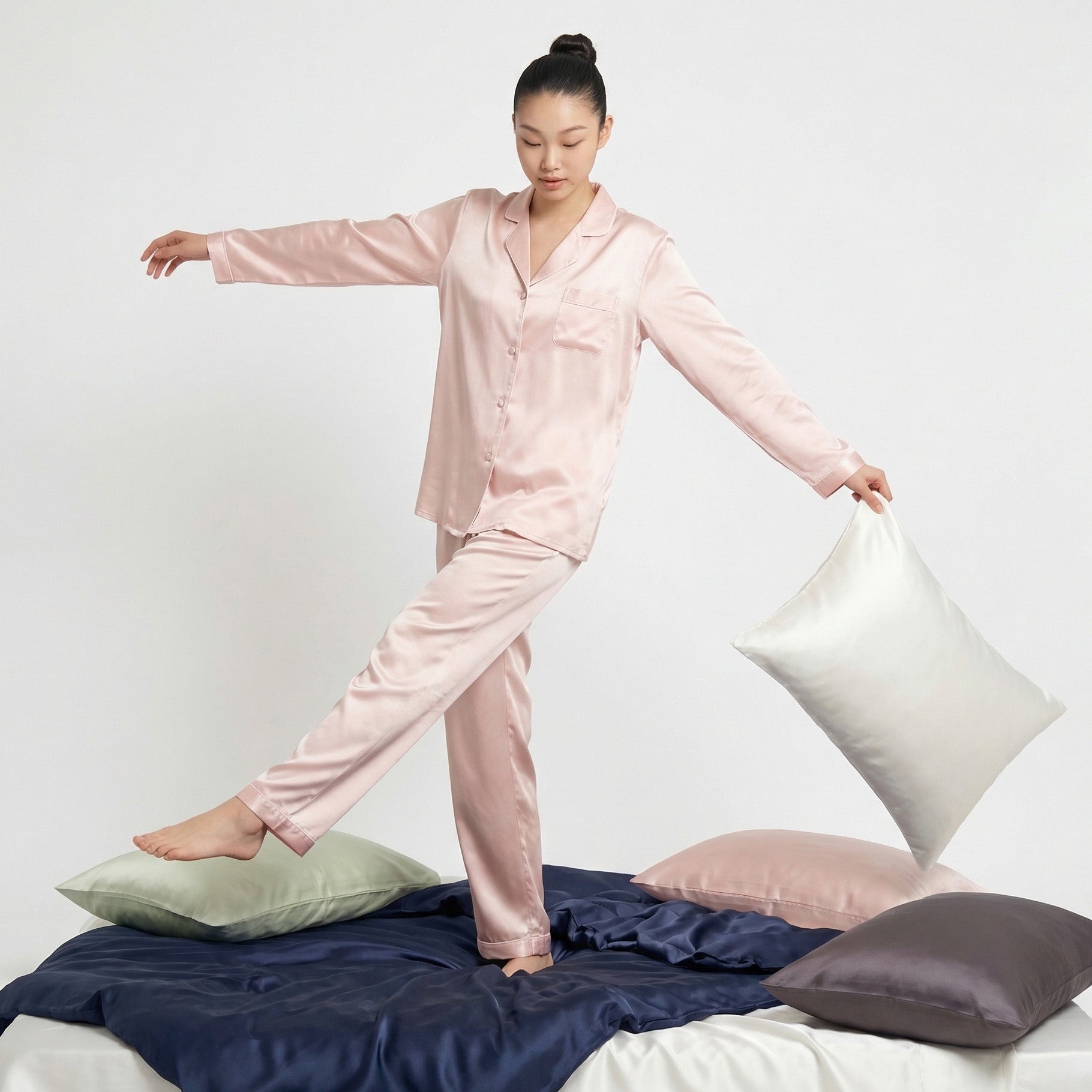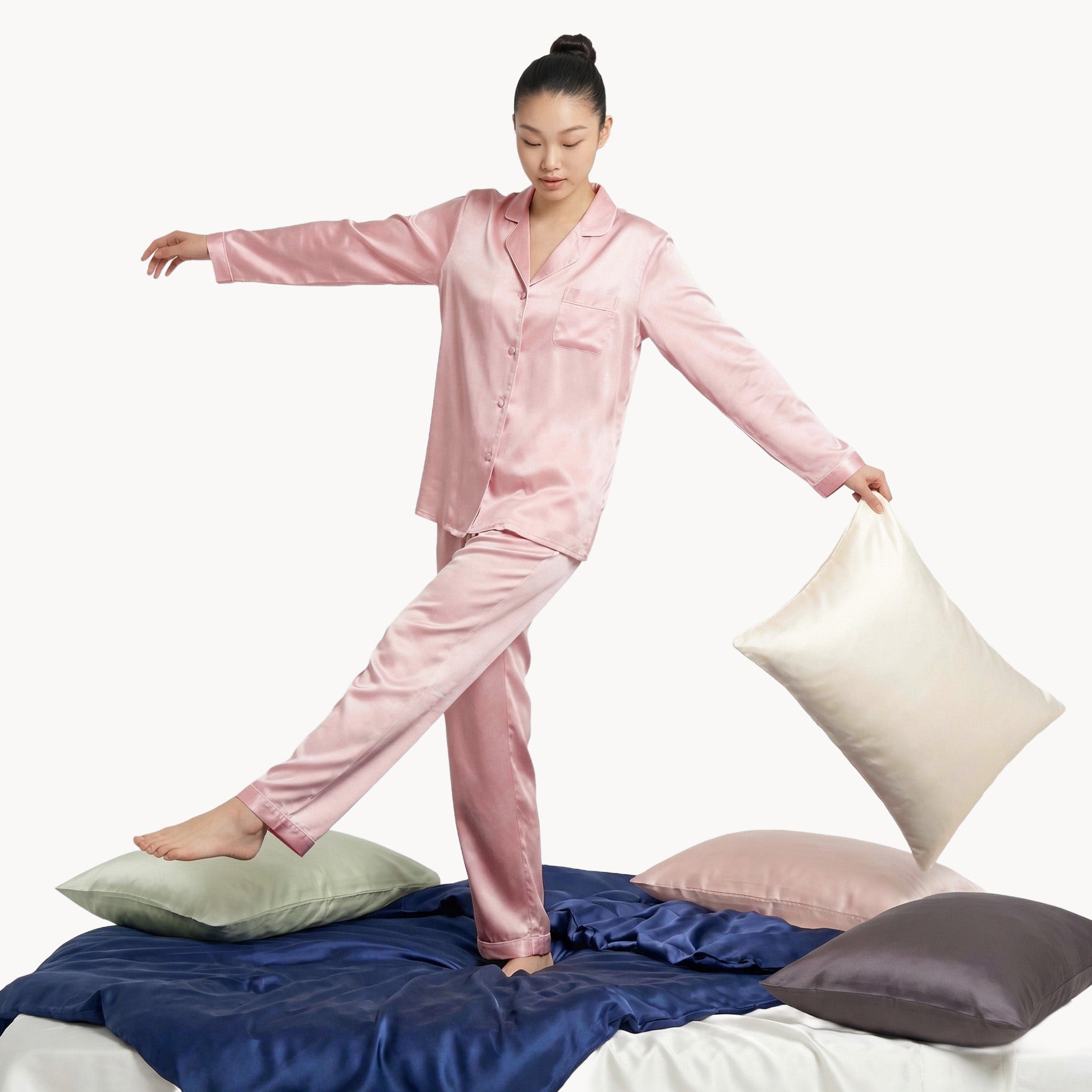 With over a decade of textile practice, we use 100% Grade 6A Mulberry silk, OEKO-TEX® certified, carefully sourced and tested for strength, balance, integrity, and refinement.